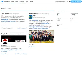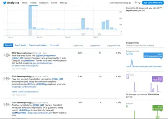 - The GM division twitter account (twitter.com/egu_gm) is active with over 3500 followers, and an audience that is growing every week. We encourage continued engagement with the account, so please get in touch by tagging us (or contacting Edwin Baynes) in your posts if there is anything you would like to share with the GM and ECS communities.