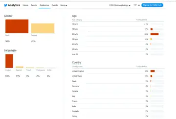 EGU-related events, scientific highlights, job advertisements and so on. Anything you pass over to us gets forwarded to a broader audience. Given the size and popularity of geomorphology, we have a whopping 4000+ Twitter followers and 2000+ Facebook likes.